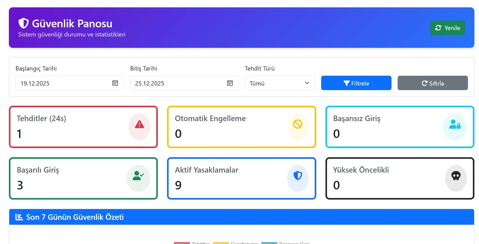 Dahili ziyaretçi analitiği, detaylı istatistikler ve gerçek zamanlı güvenlik raporları sayesinde; sitenizde hangi içeriklerin öne çıktığını ve olası riskleri anlık olarak takip edebilirsiniz.