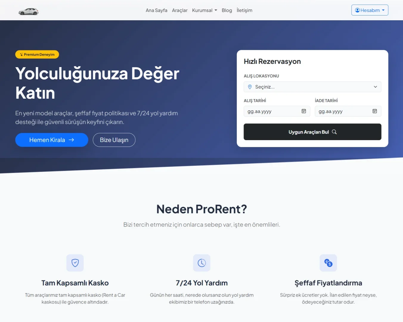 Araç kiralama firmaları için özel olarak geliştirdiğimiz bu ProRent araç kiralama cms'i geleneksel içerik yönetim sistemlerinin ötesine geçerek sektörel ihtiyaçlara yapay zeka ve yüksek SEO performansı ile yanıt veriyor.