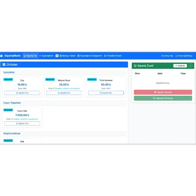 SiparişMatik, karmaşık süreçleri ortadan kaldırır ve işletmenize düzen getirir. Müşteri ve çalışan memnuniyetini artırırken, iş süreçlerinizi hızlandırır. SiparişMatik’in kurum içi sipariş yönetiminde nasıl fark yarattığını keşfedin!